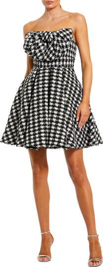 Boucle Strapless Mini Dress With Bow