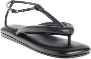 A mix of svelte and puffy straps bring a distinctive look to this Italian-made sandal done in a square-toe silhouette from supple leather.