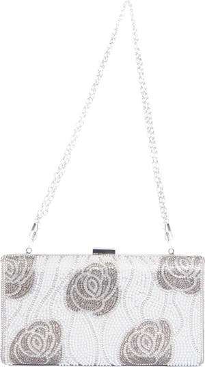 Rhinestone Floral Clutch with Chain Strap