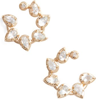 Handmade from 14-karat gold, these shapely hoop earrings are aglow with pear-cut white topaz.