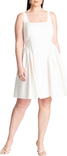 Cut from non-stretch cotton sateen, this crisp white mini dress is a sunshine-ready staple in any wardrobe. Its business-in-the-front, party-in-the-back construction gathers at the hips, while a bow ties in the back for a waist-cinching shape.