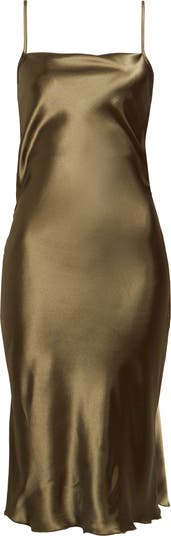 Supple satin sweetly serves the bias-cut of this slinky party dress finished with a bow at the back to enhance your exit.