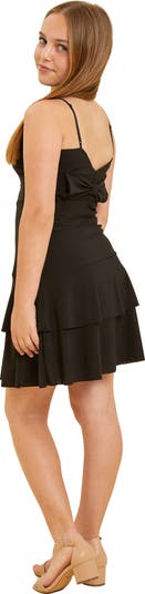 A tiered skirt gives extra movement to this sequin-adorned party dress that'll twirl with each step they take. Don't forget that bow back detailing!