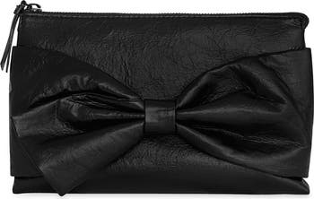 An oversized bow adds a playful flourish to this crinkle-textured clutch that brings an elegant finishing touch to your date-night look.