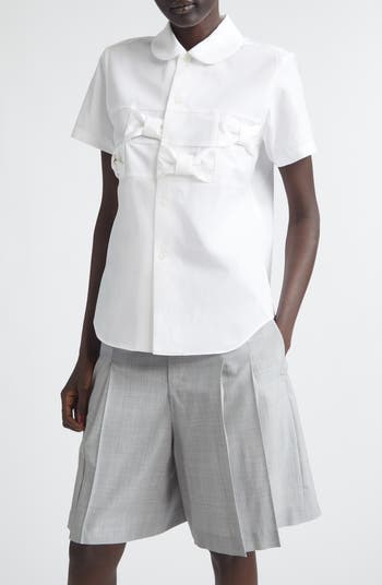 Bow Detail Cotton Broadcloth Button-Up Shirt