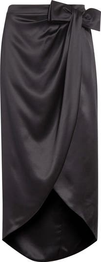 Bows are big for Alessandro Michele's fall '25 outing—here, calling attention to the artful draping of a fluid tulip skirt cut from Italian-silk crepe-back satin with a glossy sheen.