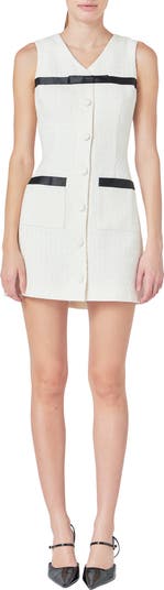 Satin ribbons and a slight sheen elevate a tweed sheath dress to night-out status.