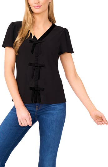 A trio of bows sweetens a satin top that's easy to style up or down.