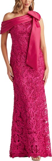 Bow Detail Soutache Lace One-Shoulder Gown