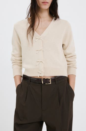 Dainty bow embellishments add a retro flourish to this weekday-staple V-neck cardigan.