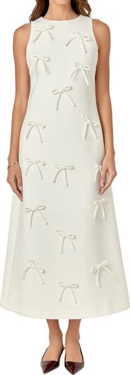 Allover bows add a dimensional element to an A-line dress that's both playful and sophisticated.