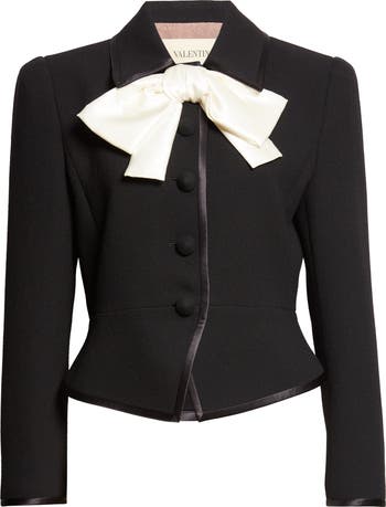 Bows are big for creative director Alessandro Michele right now. Here, a white satin version flourishes at the neck on this satin-trimmed jacket fashioned from structured Italian-wool crepe.