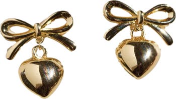 Bow & Heart Drop Earrings