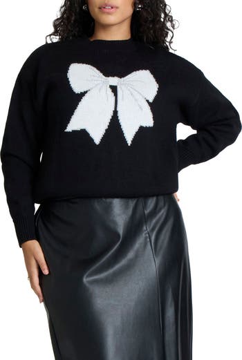 The intarsia bow design adds a little festive flair to a cozy winter sweater.