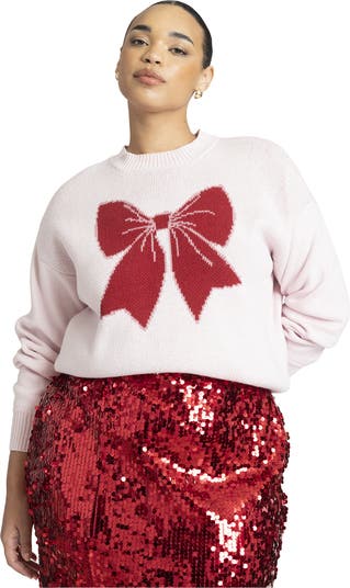The intarsia bow design adds a little festive flair to a cozy winter sweater.