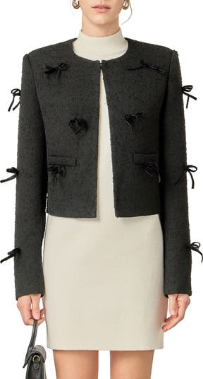 Delightful bows enhance the texture and charm of this polished jacket made in a boxy fit.
