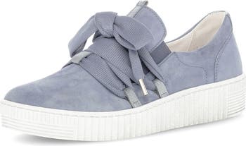 A large bow adds charm to this handmade sneaker featuring a shimmery knit upper set on a sturdy rubber sole for lasting underfoot comfort/