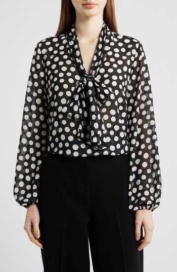 Cut from luscious chiffon, this blousy printed top is made with a drapey neck tie for polish and movement.