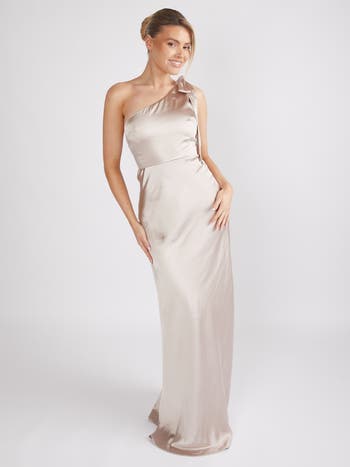 A stand-out design featuring a delicate bow detail on one shoulder that adds a touch of charm to your bridal party. Revealing some skin, and cinched at the waist to emphasise their gorgeous figure with our most flattering silhouette. The dress has a luxurious smooth satin feel with a soft sheen finish. Packaged beautifully in a storage dust bag.
