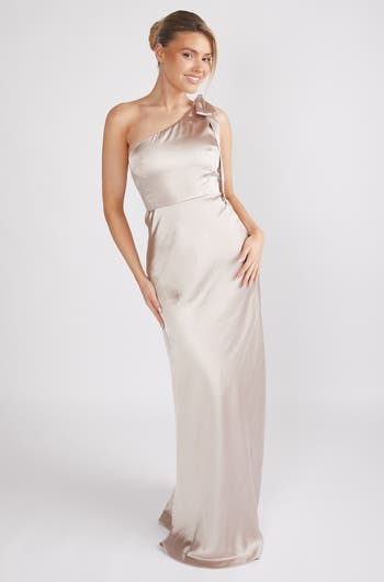Bow One Shoulder Satin Bridesmaid Dress