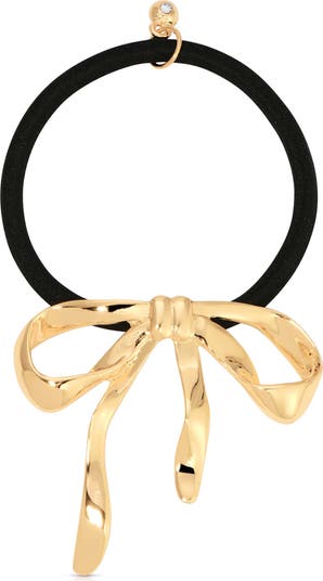 Transform your tresses into a sweet statement with this ponytail holder crowned by a sculptural bow in gleaming goldtone metal.
