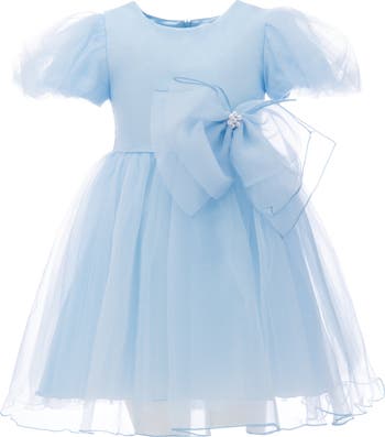 The Bow Organza Dress is a simple and delicate dress. Featuring a lightweight tulle teacup silhouette, detachable bow at the hem, with puffy light weight shoulders. An elegant and effortless look for any occasion!