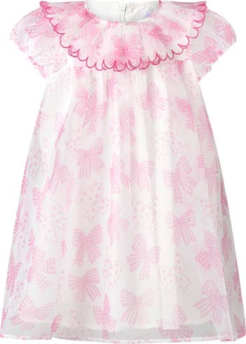 Rachel Riley Bow Organza Dress, Main, color, Pink