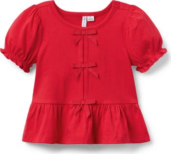 Janie and Jack Bow Peplum Top, Main, color, Red