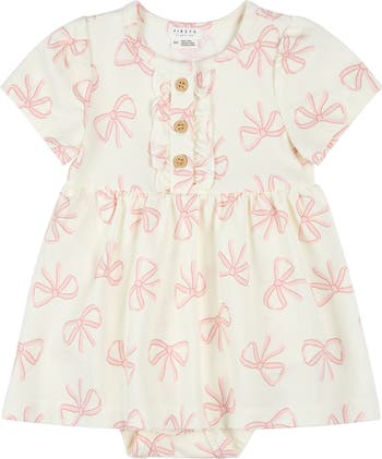 A charming bow print and frilly ruffle will have baby picture-perfect in this stretchy cotton-and-modal bodysuit.