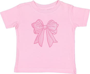 This sweet pink t-shirt features a sparkling, oversized bow, perfect for adding a touch of charming sparkle to any little girl's day!