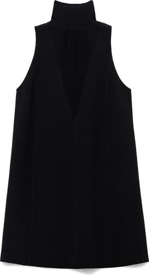 An A-line silhouette adds ease to this sleeveless dress cut in a leggy length and finished with a bow-tie back.