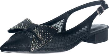 Slingback redefines timeless elegance with a structured pointed toe and statement bow detail