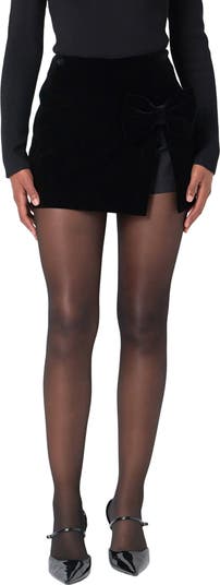 Buttery velvet adds a night-out vibe to this sweet and flirty miniskort detailed with a charming bow highlighting the slit hem.