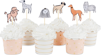 It's pawty time! Featuring a warm neutral color palette and gold foil elements, this puppy dog decorating set will definitely make your cupcakes best in show!