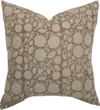 Bowen Soft Brown Floral Handblock Pillow Cover