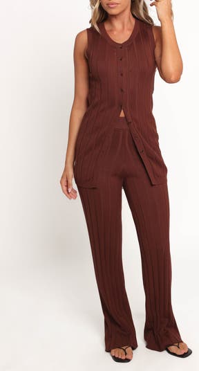 The style file is loving sets and choosing a knit option that offers a longer-length vest and pull-on pants is a winning way to own the look.