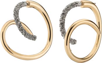 Pavé crystals trace a sculptural swirl on these goldtone earrings designed with radiant sparkle.