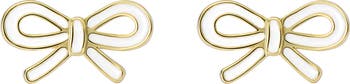 A dainty bow silhouette brings playful charm to these enamel stud earrings finished in goldtone plate.