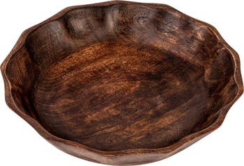 This exquisite bowl showcases the natural beauty of mango wood with its intricately carved design and rich burnt walnut finish, making it a perfect addition to boho, rustic, farmhouse, and country interiors. Ideal for serving or display, this bowl adds a touch of rustic elegance to any setting. Crafted from durable mango wood, it promises durability and style. Measuring 9.5 inches in diameter, this bowl is a delightful blend of form and function, enhancing the charm of home decor. Its versatile design allows for a variety of uses, from serving salads and fruits to displaying decorative items or potpourri. The unique burnt walnut finish adds warmth and character to any space, making it a standout piece in the home.