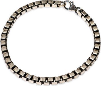 You, me, or nobody is gonna hit as hard as life. The understated Box Chain Bracelet is the champion of daily wear. The square box chain links have a classy timeless look that can be worn dressed up or down. The clean square silver chain links are a classic favorite. | o AG 925 Sterling Silver o Thickness: 4 mm o Finish: Oxidized & Polished o Lobster clasp closure o Nickel free o Handcrafted in Korea XXS is approx. 17 cm in length XS is approx. 18 cm in length S is approx. 19 cm in length M is approx. 20 cm in length L is approx. 21 cm in length XL is approx. 22 in length