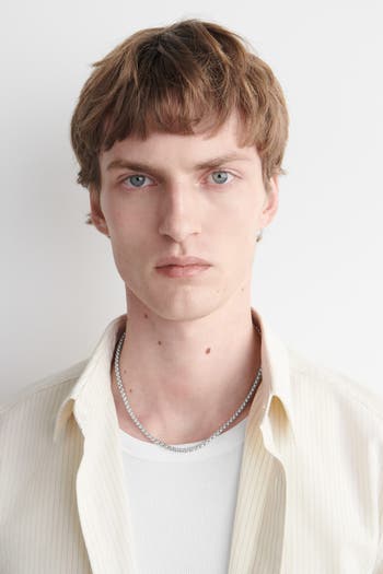 Simple jewelry has the power to subtly transform any outfit. Crafted from silver-plated metal, this modern necklace is designed with alternating rows of polished and subtly aged links for a nuanced finish. It's finished with a subtle logo-engraved tag.