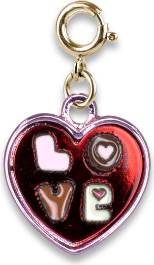 This heart-shaped charm features four scrumptious-looking chocolates that spell out 'love'. The golden charm will be a great addition to your child's charm bracelet (sold separately).