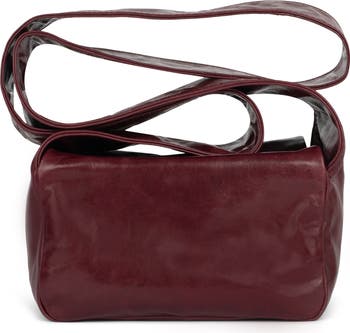 Magnetic flaps secure the boxy silhouette of this supple leather crossbody bag suspended by an extralong strap.