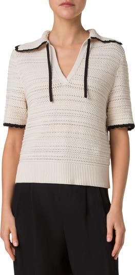 Part of the label's cruise '25 collection, this boxy crocheted sweater with contrast trim perfectly encapsulates the laid-back look of warm-weather maritime style.
