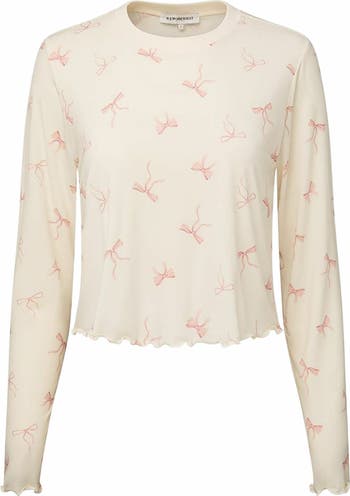 - Lettuce edges adorn the cuffs and cropped hem of this long-sleeve crewneck, a soft modal jersey style cut for a boxy fit. * Boxy fit * Long sleeves * Lettuce edge hem at sleeve opening and bottom opening * Cropped length * Crewneck * 92% Modal 8% Spandex * Machine wash with like colors. Do not bleach. Tumble dry low. Iron cool. Do not dry clean.