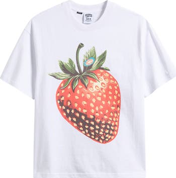 This all-cotton T-shirt leans into the brand’s bold graphic language with a strawberry that sparkles in all the right places.