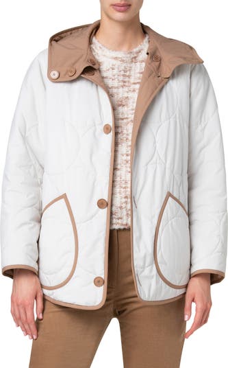 In your coat closet, one hanger offers two options for colder days with a reversible quilted jacket rendered in neutral shades.
