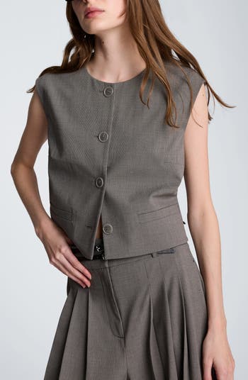 A boxy four-button vest brings modern polish with a clean jewel neckline and sleek side welt pockets. Tailored yet effortless, it's a versatile layering piece that's ideal for wearing on its own or layering over streamlined basics.