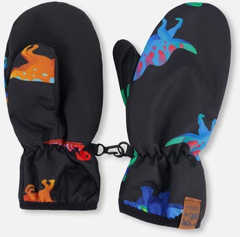 Our recycled polyester mid-season mittens in animal print are perfect for cool and damp days. Waterproof and fluorocarbon-free, they feature an eco-friendly BIONIC-FINISH® ECO coating that repels water and dirt without harmful chemicals. Made from recycled plastic bottles and lined in soft polyester, these mittens keep little hands dry, comfortable, and ready for outdoor fun.