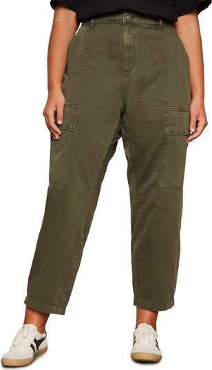 Roomy pockets amplify the utility of barrel-leg cargo pants cut from washed cotton twill in an ankle-skimming silhouette.